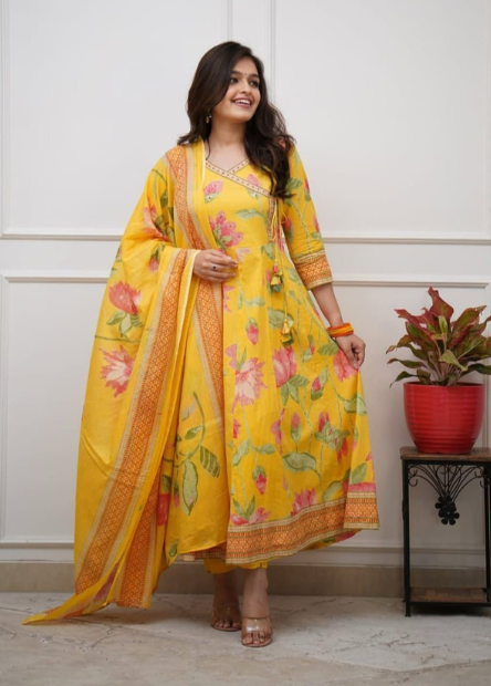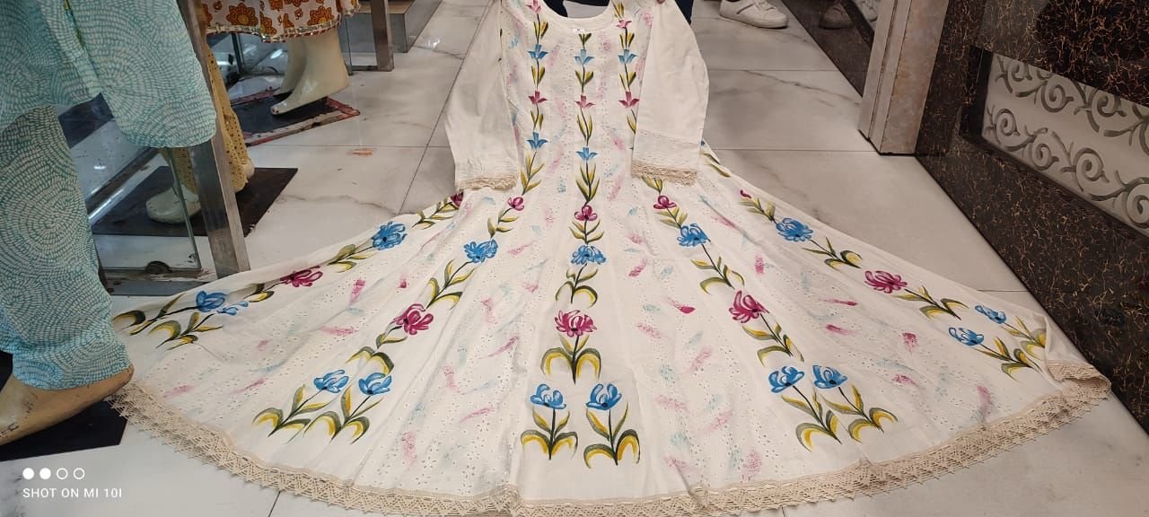 *New Floral Motif Printed Cotton kurta Set the kurta and Pleated Salwar and Soft Cotton Dupatta*💃💃