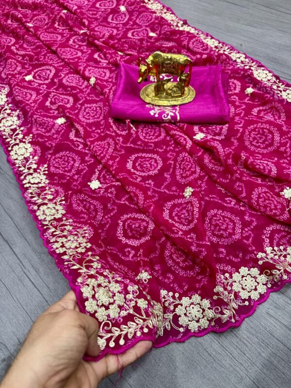 HAND PITA WORK & CUT WORK SAREE AND PALLU SAREE GORGETTE FABRIC
