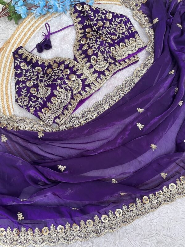 Sequins with Jari Dori Embroidery work with Cutwork Border Satin Silk Saree