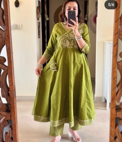 Beautiful Heavy quality cotton Fabric designer festive wear frock style kurti with pattern pant