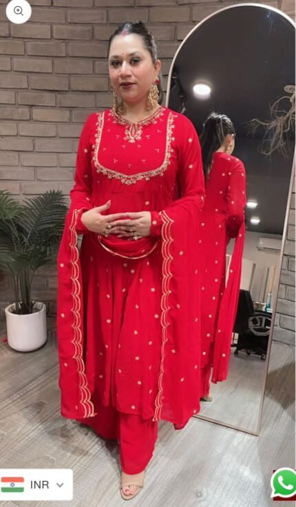 🩱*Gwon Fabric*🩱: Pure Fox Georgette With Embroidery 5mm Siqwans Work With Full-Sleeves With *(Latkana Dori With Center-Cut)*