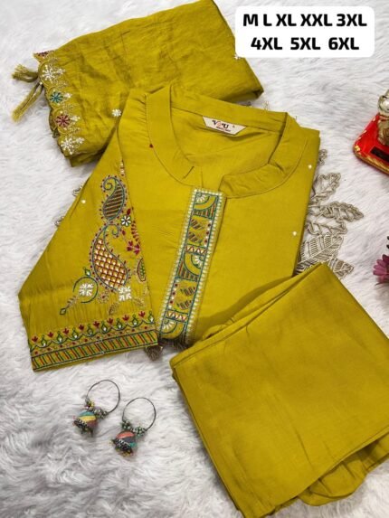 Pure Muslin Silk Traditional Kurti Pant Dupatta