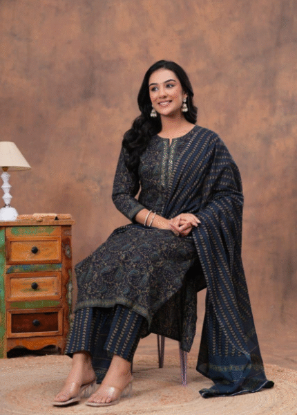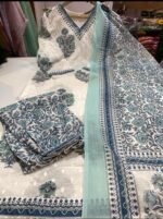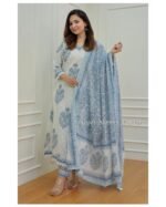 For a Festive gathering, you’ll can opt for our white – grey Floral suit set which is decorated with finest self print work and motifs.It is paired with matching pants and dupatta🌸