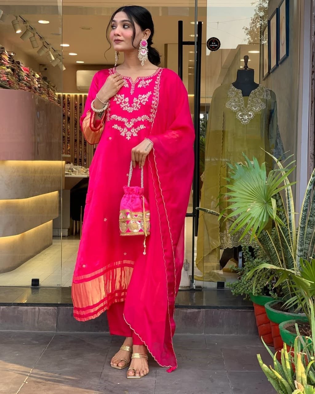 Be the first to review “Chanderi Cotton salwar suit festive wear”