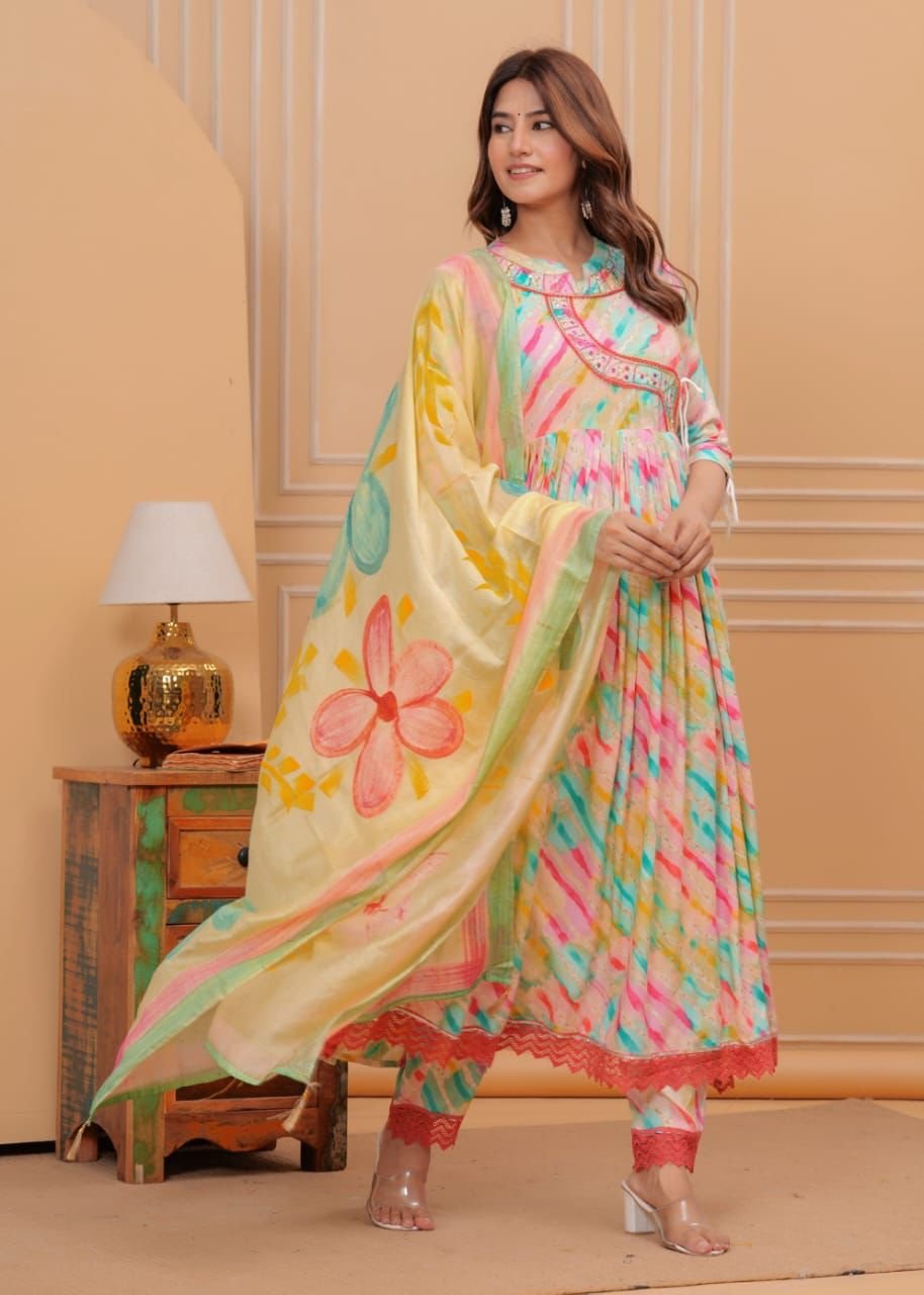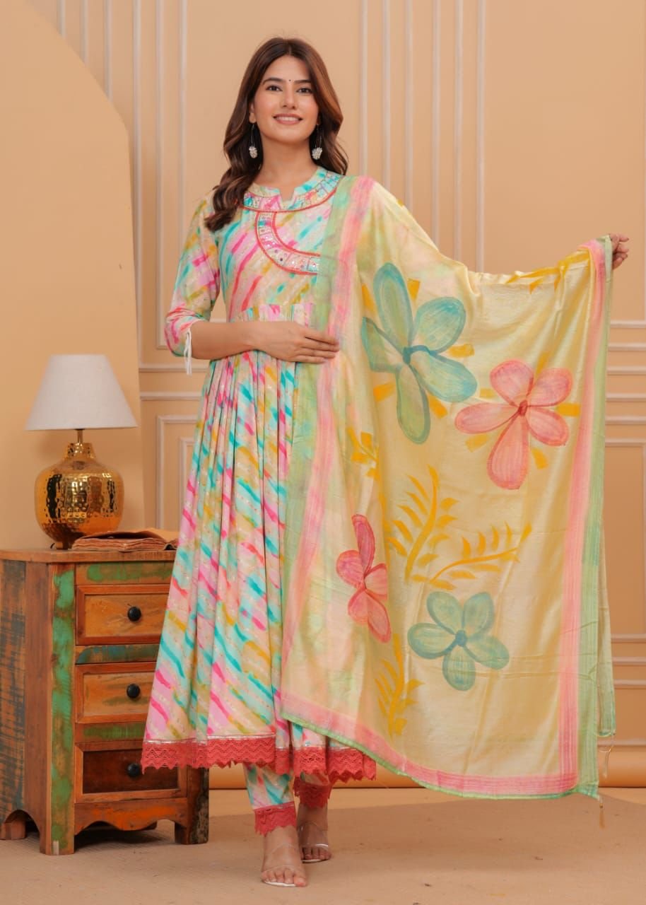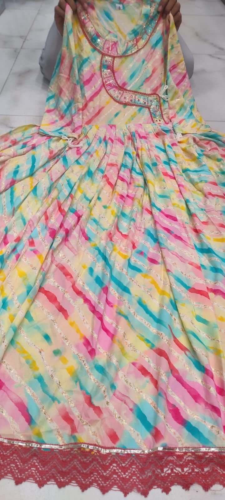 πππ₯*Launching New Designer lahariya print dress With Heavy hand sequence and mirror Work With Bottom and Dupatta *π₯πππππ
