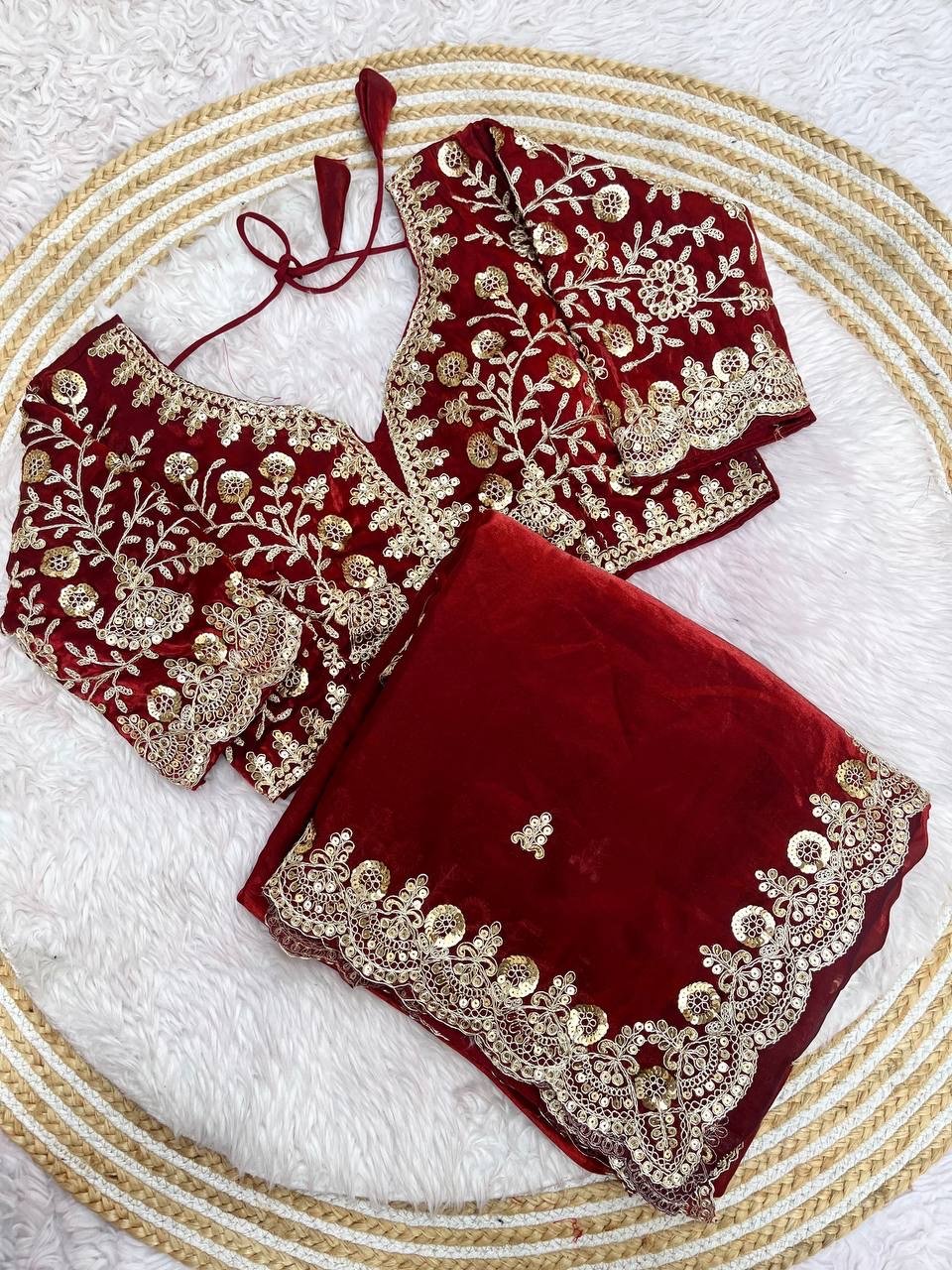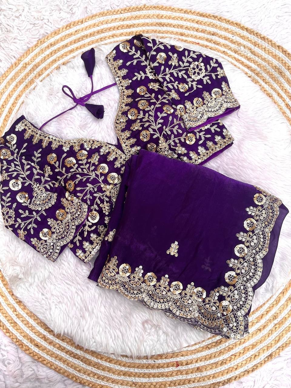 *Work* : 5mm Sequins with Jari Dori Embroidery work with Cutwork Border & Sequins Butti in Pallu with Body Parts.