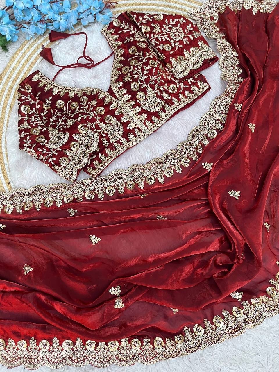 Sequins with Jari Dori Embroidery work with Cutwork Border Satin Silk Saree