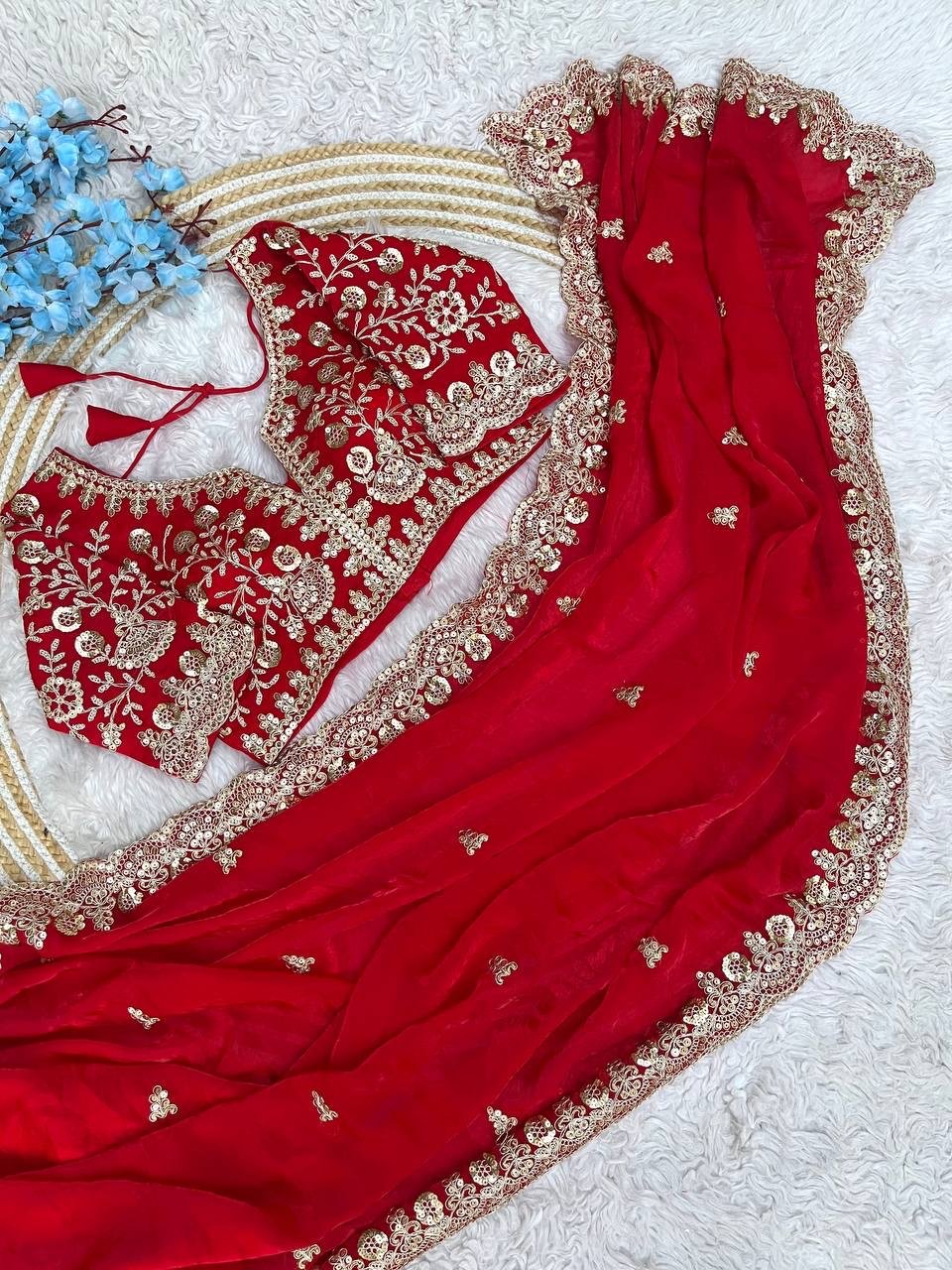 NET FABRIC WITH HEAVY EMBROIDERY & FANCY LACE WORK SAREE WITH STITCH BLOUSE