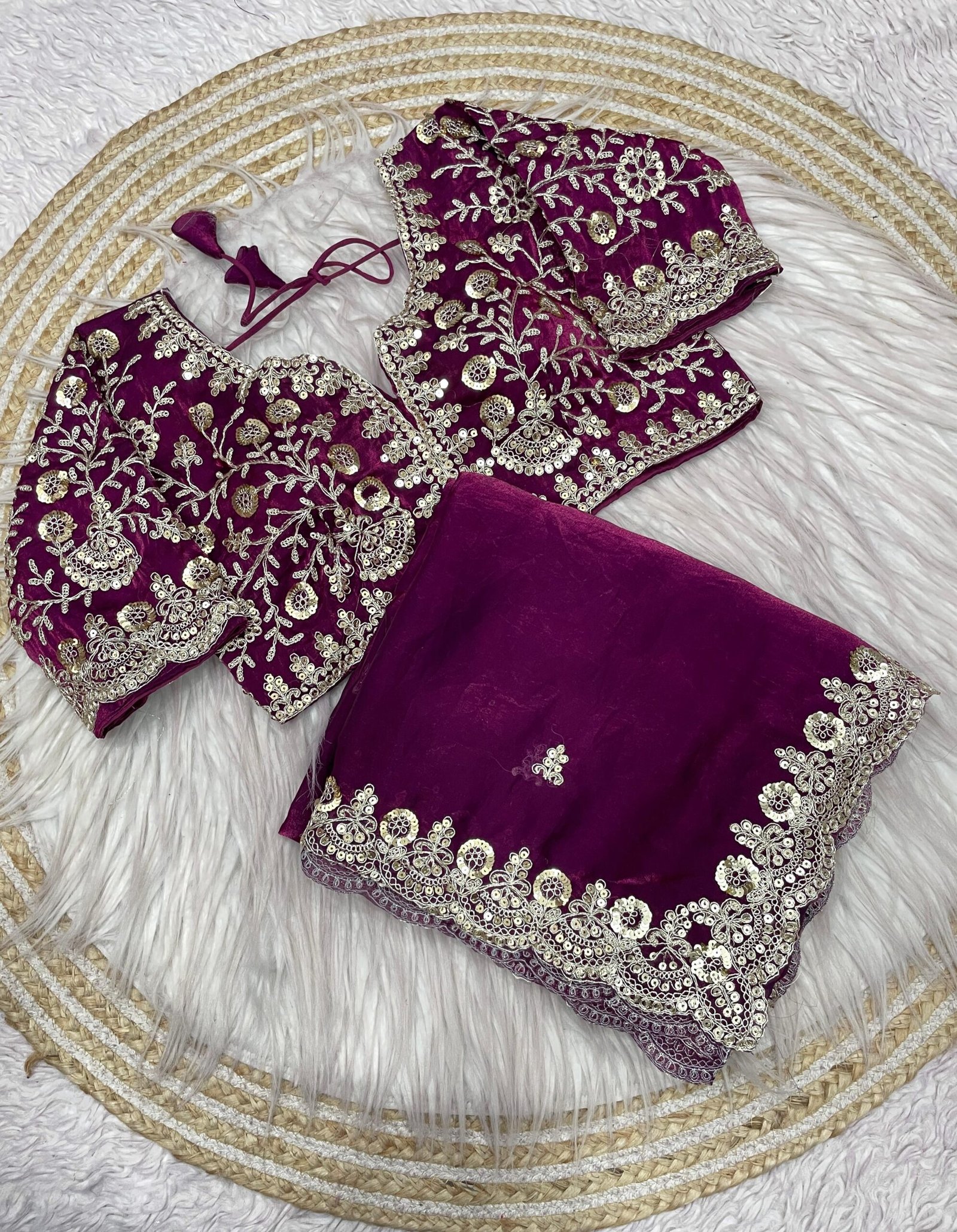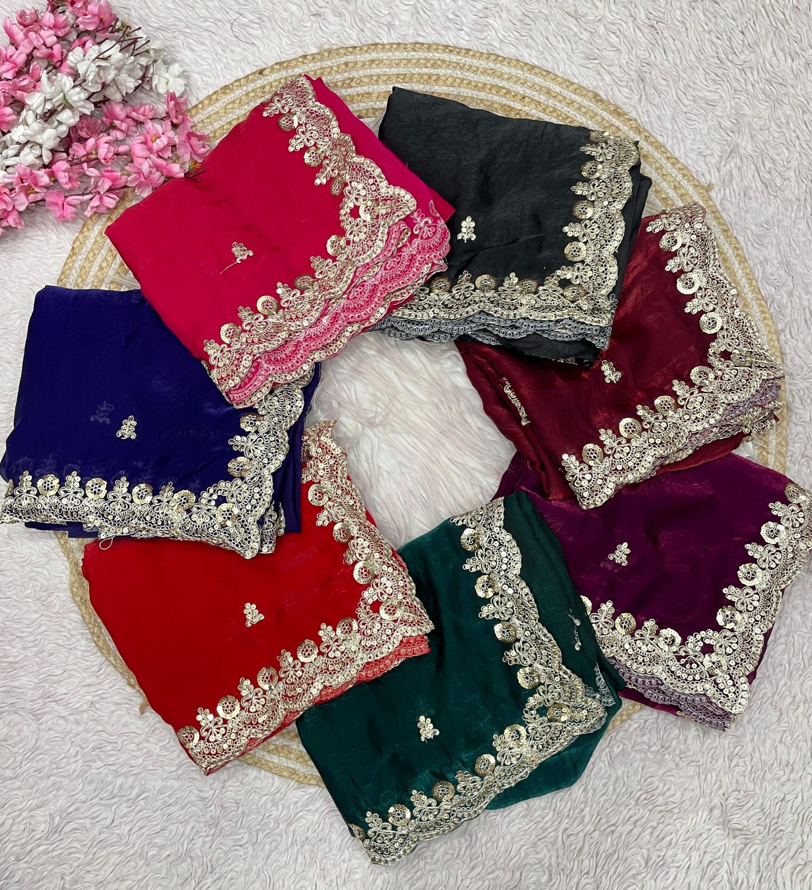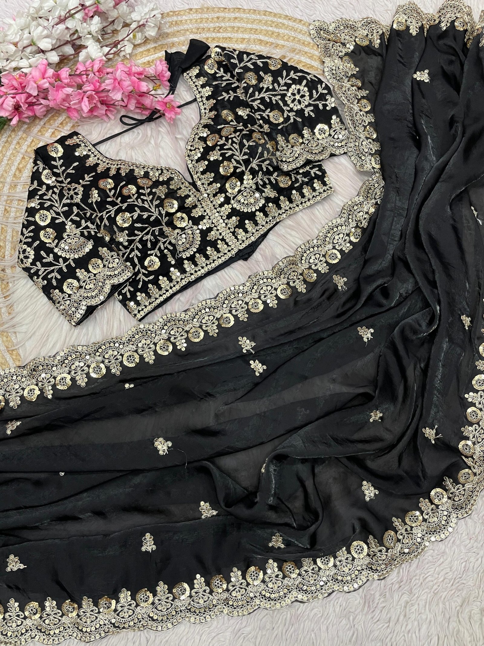 Be the first to review “Sequins with Jari Dori Embroidery work with Cutwork Border Satin Silk Saree”